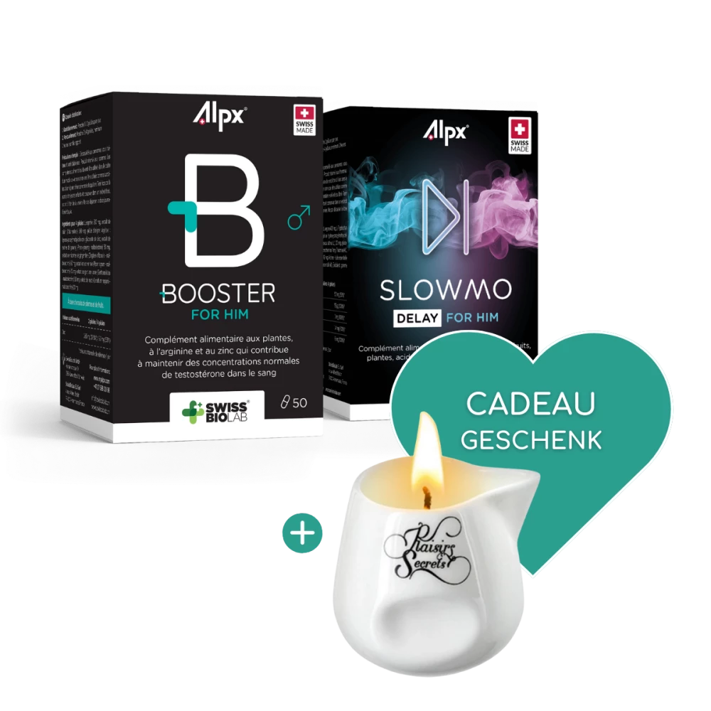 Artikelnummer: alpx-booster-slowmo Dieser Duo-Pack besteht aus: 1x Alpx Booster for HIM, 1x Alpx Slowmo und einer gratis Massagekerze